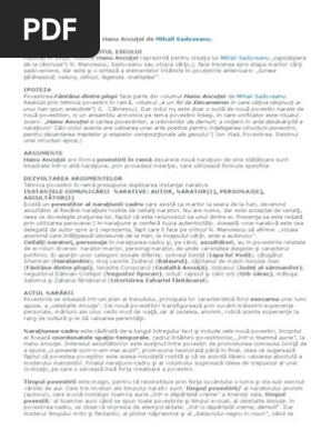 vizitati articolul complet aici : https://ro.scribd.com/doc/124205589/HANU-ANCUTEI-Comentariu-Final Mai multi calatori poposesc acolo : Structura şi conţinutul eseului publicat în 1928, volumul hanu ancuţei reprezintă pentru creaţia lui mihail sadoveanu „capodopera de la răscruce( n. Hanul ancutei este un spatiu privilegiat, ocrotitor, securizant, expresie a vechimii si a continuitatii, loc aflat la rascruce de drumuri, in care se intersecteaza destine, dar si momente temporale diferite: