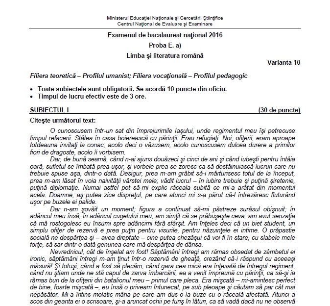 Subiecte Bac Romana 2016